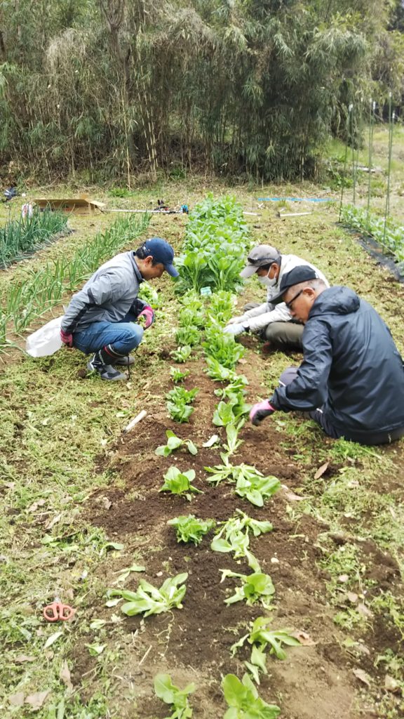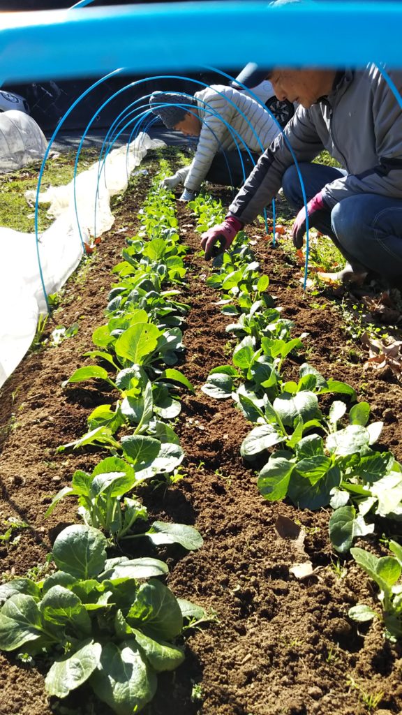 ■ 本日は4人で中井作業を行いました。コマツナ、サラダ菜が放置しすぎたためにかわいそうな状態になっていました。この時期でも週に一回は様子をみに来ないといけないですね。