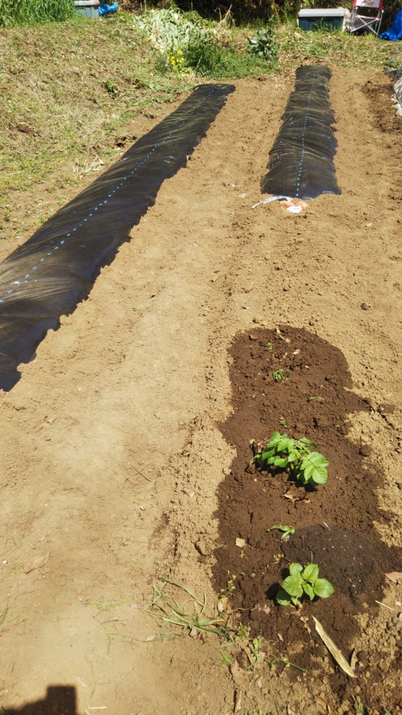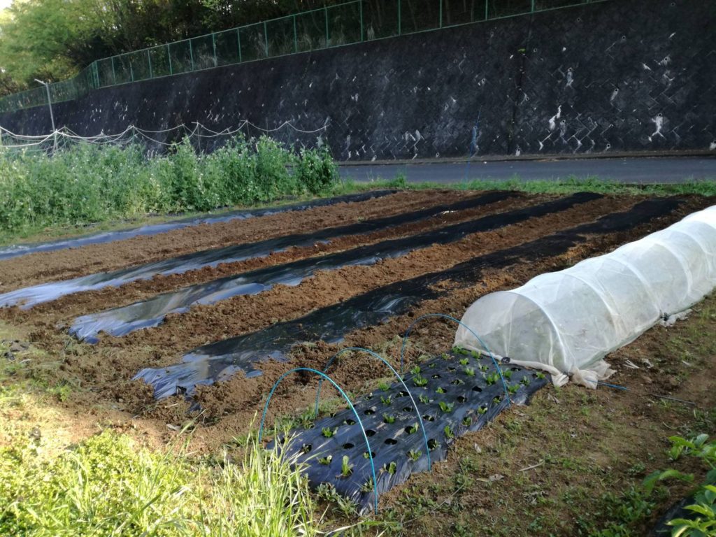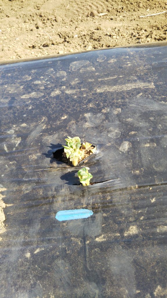■ラッカセイ:既にマルチをかけていた1畝のみ小川さん提供苗を定植もう1畝は後日