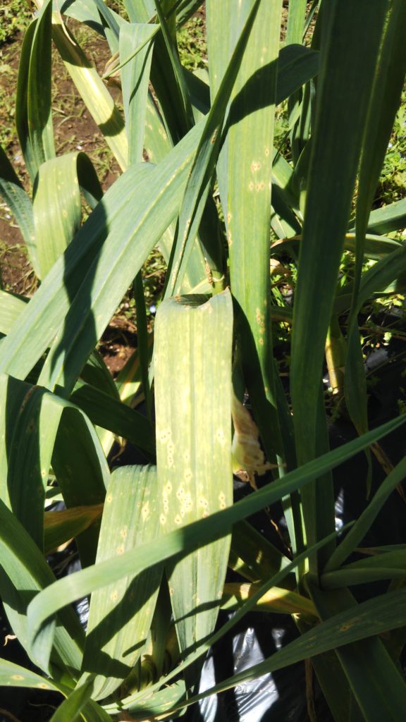 ■ニンニク:ほとんどのカブが黄化、さび病のため、危なそうな株を抜いた。良品率20%程度?