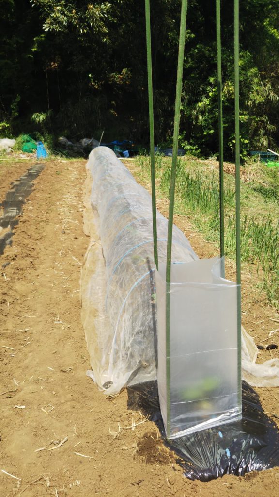 ■インゲン:べた掛けを2週間放置していたため、芽が腐食→再度播種